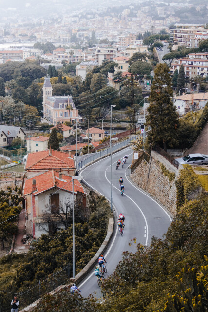 The front of the race descending the Poggio looking out over San Remo on the Italian Coast. Shooting this I had no idea who was going to win, it was chaos, so many good riders so close together.